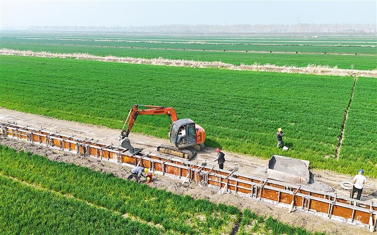 四月二日,施工人員在江蘇省連云港市崗埠農(nóng)場(chǎng)開(kāi)展水利設(shè)施建設(shè),為糧食穩(wěn)產(chǎn)增產(chǎn)打好基礎(chǔ)。徐 衛(wèi)攝(中經(jīng)視覺(jué))