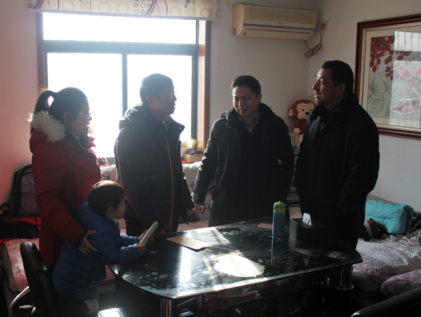 2月7日上午,集團公司紀(jì)委書記章朝陽一行到濱淮農(nóng)場走訪慰問困難職工,農(nóng)場黨委成員李德利、傅龍光、馬傳武陪同?! £惼际菫I淮農(nóng)場四分場退休職工,兒子因車禍去世,后兒媳又離開了這個家庭,女兒也因婚姻問