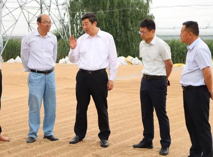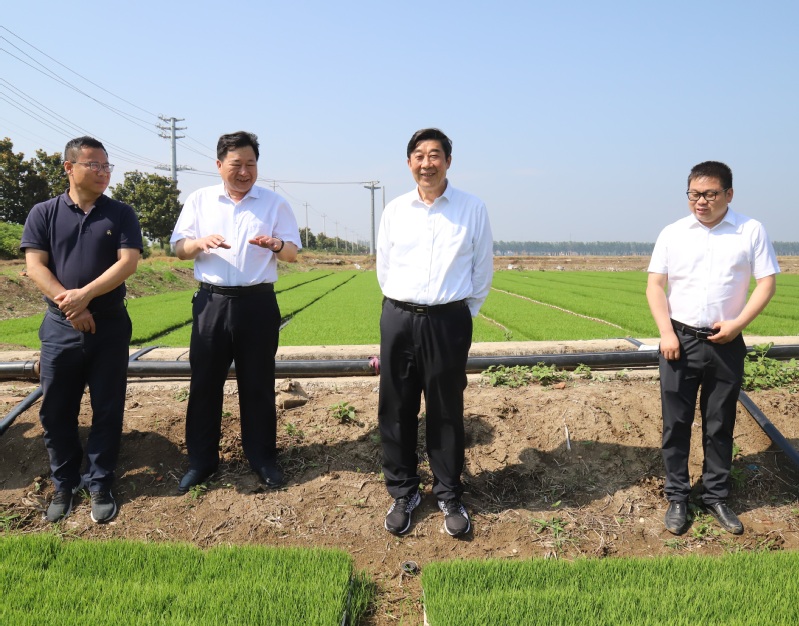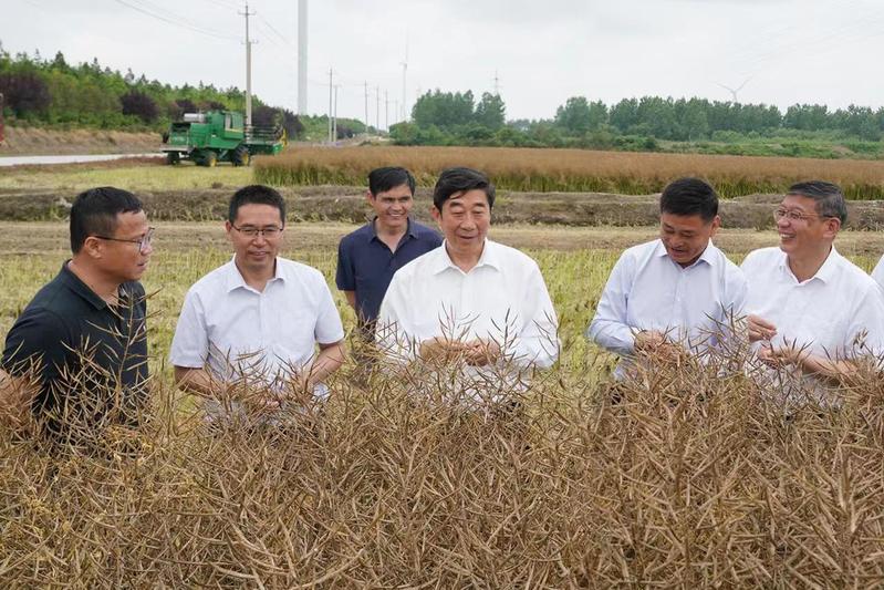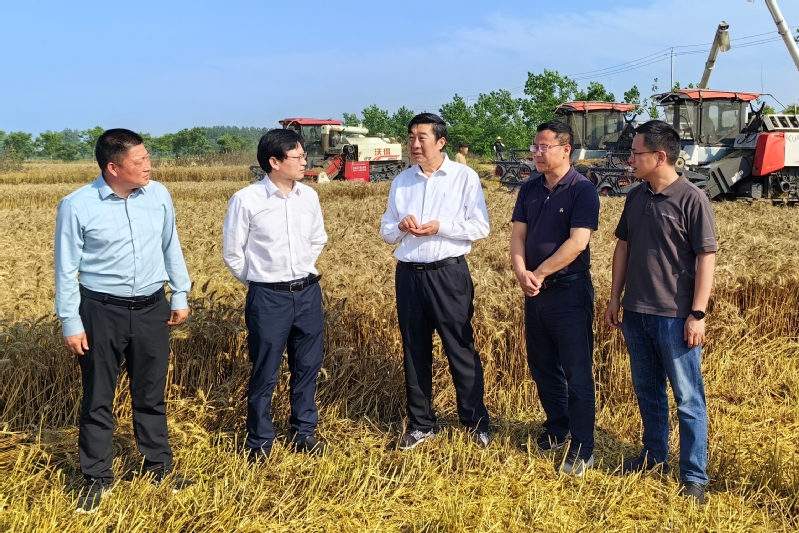 6月1日下午,集團(tuán)公司黨委副書記、總經(jīng)理胡兆輝到新曹調(diào)研指導(dǎo)“三夏”工作和農(nóng)場(chǎng)公司產(chǎn)業(yè)發(fā)展。胡兆輝先后察看了蘇墾農(nóng)發(fā)新曹分公司油菜收割現(xiàn)場(chǎng)、小麥?zhǔn)崭瞵F(xiàn)場(chǎng)、水稻秧池、耕整打作現(xiàn)場(chǎng)、糧食烘干線和晾曬場(chǎng)、高標(biāo)準(zhǔn)農(nóng)田建設(shè)項(xiàng)目區(qū),以及農(nóng)場(chǎng)公司原絲綢廠廠房、日本矮麥冬套種基地,認(rèn)真聽取有關(guān)人員的情況介紹,與一線工作人員親切交談,詳細(xì)了解蘇墾農(nóng)發(fā)新曹分公司“三夏”工作進(jìn)展和農(nóng)場(chǎng)公司產(chǎn)業(yè)發(fā)展情況,對(duì)新曹“同舉一面旗、共下一盤棋、全力戰(zhàn)三夏”的做法表示肯定,對(duì)新曹前段時(shí)間大力支持“淮海啤麥會(huì)戰(zhàn)”給予贊揚(yáng),對(duì)新曹一班人團(tuán)結(jié)奮斗、激情創(chuàng)業(yè)的氛圍表示贊賞。他指出,今年“三夏”生產(chǎn)形勢(shì)十分嚴(yán)峻,新曹作為墾區(qū)大場(chǎng)之一,要牢記“國(guó)之大者”,強(qiáng)化責(zé)任擔(dān)當(dāng),全力做好“三夏”各項(xiàng)工作,為墾區(qū)“三夏”全勝作出更大貢獻(xiàn)。他要求,要強(qiáng)化防災(zāi)抗災(zāi)減災(zāi)意識(shí),圍繞“五不”和“五確保”目標(biāo),立足于搶,著眼于快,抓住當(dāng)前晴好天氣,保種子、保原糧、保栽插進(jìn)度,把豐收在望變成豐收到手,一著不讓同步打牢秋超增收基礎(chǔ);要樹牢墾區(qū)一盤棋思想,針對(duì)可能出現(xiàn)的惡劣天氣,提前做好“南機(jī)北援”準(zhǔn)備工作,全力支援兄弟單位“三夏”搶收搶種。他強(qiáng)調(diào),開展主題教