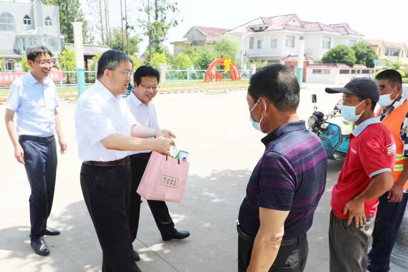 7月13日,集團(tuán)公司黨委委員、工會(huì)主席楊義林到臨海為堅(jiān)守生產(chǎn)一線的職工送清涼,農(nóng)場(chǎng)公司黨委領(lǐng)導(dǎo)班子成員以及片區(qū)財(cái)務(wù)總監(jiān)陪同。楊義林先后來(lái)到河濱公園、健康小屋核酸檢測(cè)點(diǎn)和農(nóng)機(jī)總站,向奮戰(zhàn)在基層一線的環(huán)衛(wèi)職工、疫情防控工作人員和農(nóng)機(jī)駕駛?cè)藛T表示慰問(wèn)并送上了清涼禮包,親切詢問(wèn)他們的工作情況。楊義林對(duì)高溫下堅(jiān)守的職工表示感謝,囑咐大家在高溫工作時(shí)要加強(qiáng)自我保護(hù)和安全防范,做好防暑降溫,科學(xué)安排作息時(shí)間,保障身體健康。同時(shí)要求臨海做好夏季安全生產(chǎn)和防暑降溫工作,科學(xué)安排一線職工夏季工作時(shí)間,既保證高溫期間農(nóng)業(yè)生產(chǎn),又要維護(hù)廣大職工的安全健康權(quán)益,確保高溫時(shí)節(jié)各項(xiàng)工作平穩(wěn)有序開(kāi)展。大家紛紛表示,將一如既往、踏踏實(shí)實(shí)做好本職工作,以實(shí)際行動(dòng)喜迎二十大勝利召開(kāi),為建設(shè)美麗臨海作出更大貢獻(xiàn)。