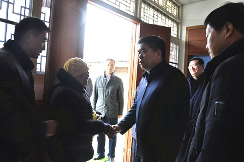 1月10日 下午,集團公司黨委書記、董事長魏紅軍到三河走訪慰問部分困難職工,雖然陰霾的天空不時飄著小雨,但受慰問的困難職工家中卻是暖意融融。  在社區居民李軍家,魏紅軍握著李軍的手