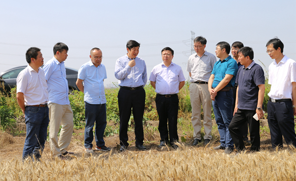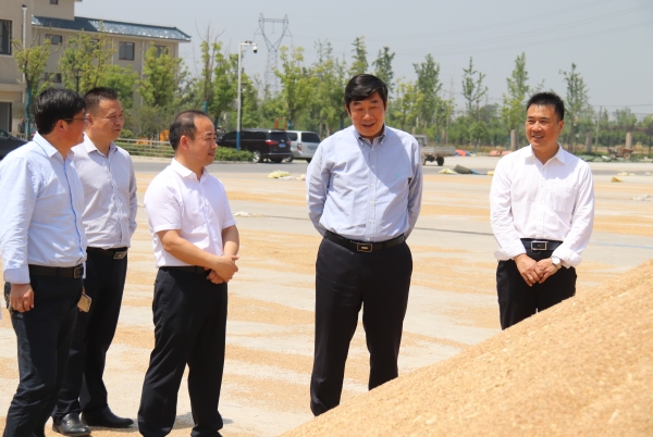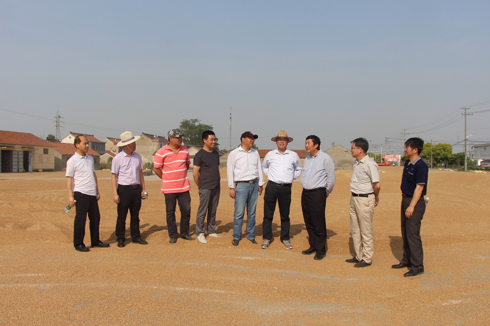 炎炎夏日,風吹麥浪,遍地金黃。6月4日,集團公司總經理、蘇墾農發股份公司董事長胡兆輝,到南通檢查指導“三夏”工作。蘇墾南通公司黨委班子成員陪同并匯報工作。  胡兆輝一行先后