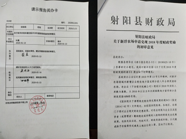 3月9日,在新洋農場有限公司一季度工作例會上,公司資產經營部負責人匯報一則喜訊,新洋向縣政府呈遞