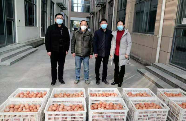 2月4日下午,盱眙恒邦蛋雞養殖場王貴元駕駛小貨車,來到盱眙縣人民醫院,向奮戰在新