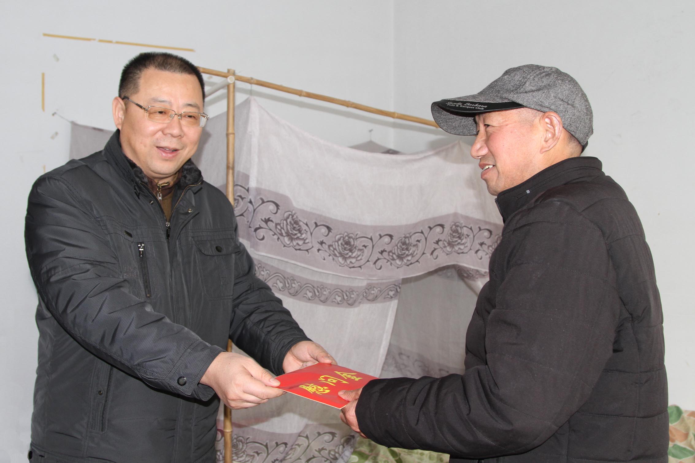 1月9日上午,省農墾集團公司工會副主席姚海洪一行到崗埠慰問困難職工,為他們送去慰問金、