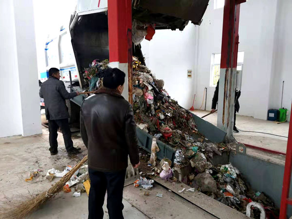 1月6日上午,一輛清運車將垃圾運至垃圾中轉站,將垃圾倒入垂直壓縮機內壓縮成塊…&h