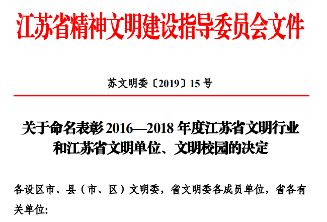 近日,蘇墾農發通過了省國資委文明單位檢查考核組的嚴格考評、復核驗收,得到了江蘇省文明委的肯定,被
