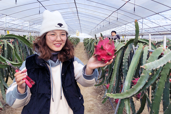 初冬時節,走進?港農場有機農莊的火龍果園仍然溫暖如春,經過三年多的試驗摸索,“南