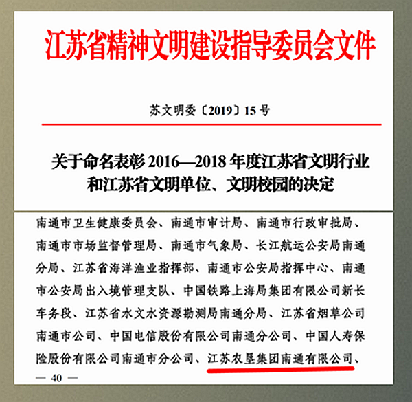 蘇墾南通公司喜獲“江蘇省文明單位”稱號