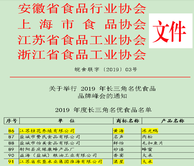 筆者從長三角食品工(行)業協會聯席會近期發布的皖食聯字[2019]03號文件中獲悉,長三角名優食