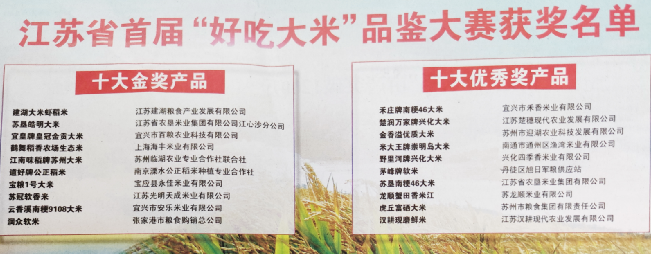 蘇墾兩產品躋身江蘇省首屆“好吃大米”品鑒大賽獲獎名單