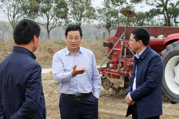 蘇墾農發總裁王立新指導秋播生產  連日來,?港分公司圍繞三秋總體部署,堅持“高效