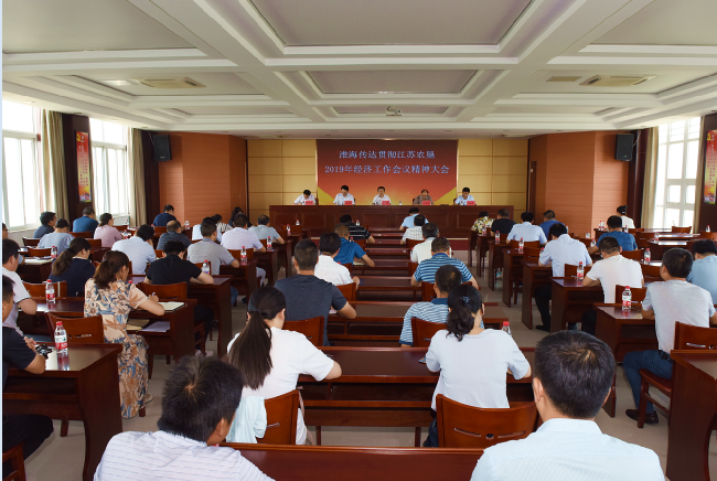 7月31日下午,淮海召開傳達集團公司2019年經濟工作會議精神大會。農場公司黨委書記、董事長、總
