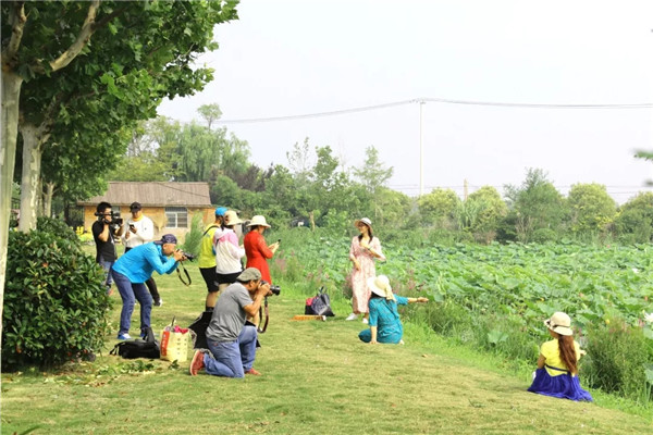 預想夏日一花開,方知游客為荷來。7月13日上午