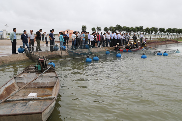 東辛農場有限公司水產2.2萬畝南美白對蝦進入全面起捕期,日起捕量在10萬斤以上,水產品銷售也漸入