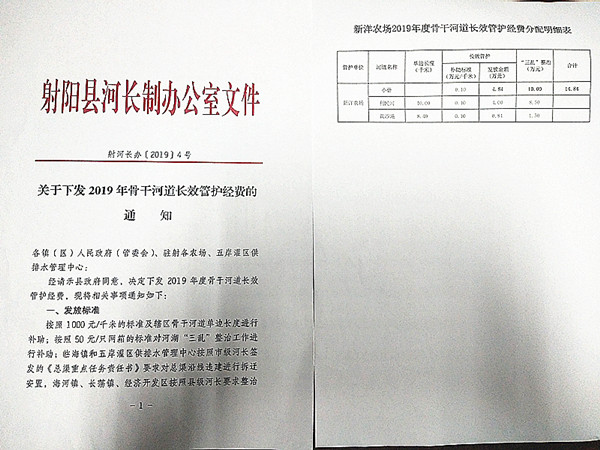 新洋強化水環境治理獲射陽縣2019年骨干河道長效管護經費14.84萬...