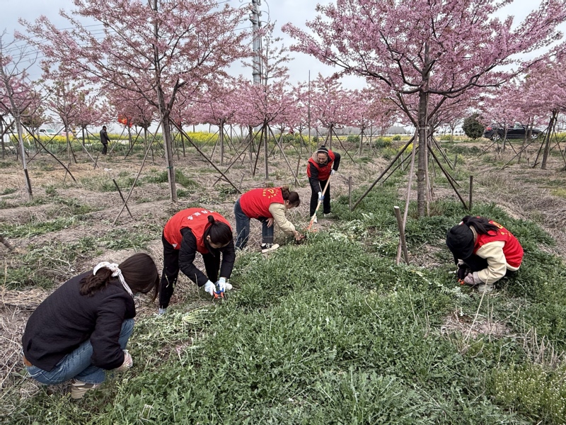3月28日,白馬湖農(nóng)場組織開展巾幗護林園志愿活動,穿著紅色馬甲巾幗志愿者們對各種雜草進行全面清理,忙碌身影與盛開的櫻花相互交織成一道亮麗的風(fēng)景線。
