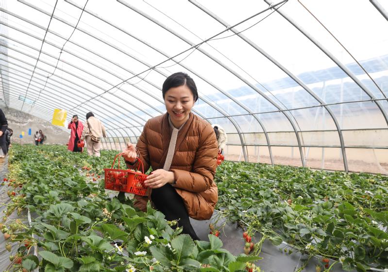 走進云臺農(nóng)場云水灣濕地公園草莓大棚,沁人心脾的果香撲面而來。不少游客前來采摘,三三兩兩的游客手提小籃子穿梭在地壟間精挑細選,將一顆顆寶石般的草莓“收入囊中”,動手的快樂、品嘗的喜悅、打趣的笑聲溢滿大棚。大家盡情享受著“莓”好時光,體驗和感受采摘的樂趣,品嘗草莓的鮮甜。