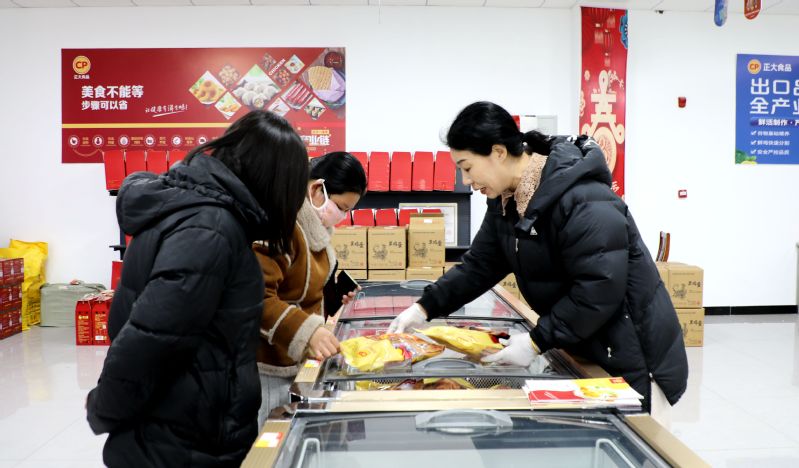 東辛農(nóng)場東米門店創(chuàng)新推出“冷凍+鮮品”雙引擎模式,在做好冷凍速食產(chǎn)品銷售的基礎(chǔ)上,通過引入鮮豬肉、雞蛋、糧油、大米等高頻次消費品,不斷提升營銷能力和水平。圖為顧客正在選購東米產(chǎn)品。