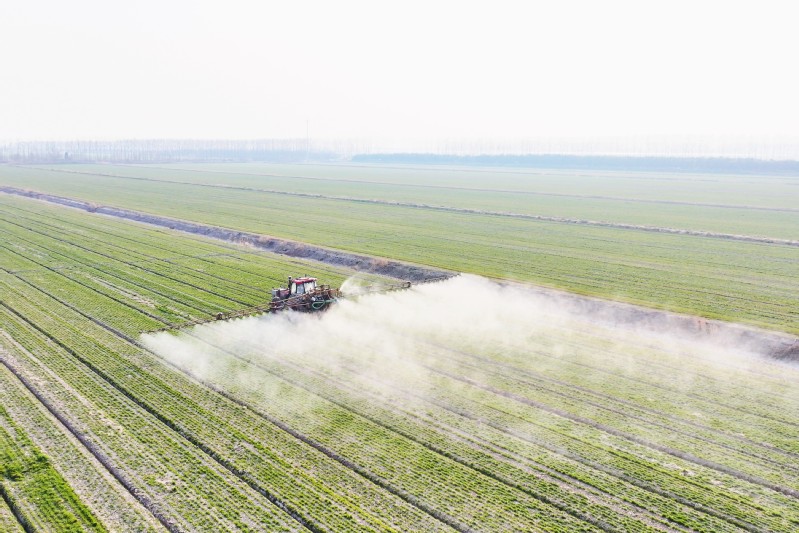 春季是雜草生長(zhǎng)的高峰期,同時(shí)也是小麥?zhǔn)┓实年P(guān)鍵節(jié)點(diǎn)。及時(shí)開展化學(xué)除草并合理施肥,能夠有效抑制雜草危害,為小麥生長(zhǎng)補(bǔ)充所需養(yǎng)分,促使麥苗茁壯成長(zhǎng)。連日來,在三河的 4.2 萬畝麥田里,無人機(jī)、植保機(jī)在田間往來穿梭,開展化除作業(yè)。各生產(chǎn)區(qū)依據(jù)前期對(duì)草情苗情的普查結(jié)果,科學(xué)挑選除草劑,并嚴(yán)格按照配比和操作規(guī)程進(jìn)行噴施,在確保除草效果的同時(shí),防止對(duì)小麥造成藥害。與此同時(shí),針對(duì)不同地塊的肥力狀況以及小麥生長(zhǎng)態(tài)勢(shì),制定了精準(zhǔn)的施肥方案,以提升肥料利用率。2月27日上午,在潘莊生產(chǎn)區(qū)王佳鈺規(guī)模體田間,生產(chǎn)區(qū)副主任朱廣耀、農(nóng)業(yè)技術(shù)員孫文崢一邊在田間查看雜草發(fā)生情況,一邊根據(jù)苗情苗勢(shì)制定化除和施肥方案。田的另一側(cè),無人機(jī)空中作業(yè)與地面植保機(jī)作業(yè)的轟鳴聲交織在一起,一幅春管生產(chǎn)繁忙的畫卷呈現(xiàn)在眼前。“由于前段時(shí)間長(zhǎng)時(shí)間干旱無雨,給在田小麥管理帶來了一定影響,這次降雨對(duì)小麥生產(chǎn)極為關(guān)鍵,我們務(wù)必抓住這次降雨的有利時(shí)機(jī),完成麥田春季化除和肥料撒施工作,化除工作今天基本結(jié)束,就等著下雨撒肥了?!?潘莊生產(chǎn)區(qū)副主任朱廣耀說道。為切實(shí)做好春季麥田化除和施肥工作,該場(chǎng)農(nóng)業(yè)中心還組織了農(nóng)業(yè)技術(shù)服務(wù)隊(duì)伍,深入田間地頭進(jìn)行
