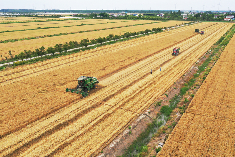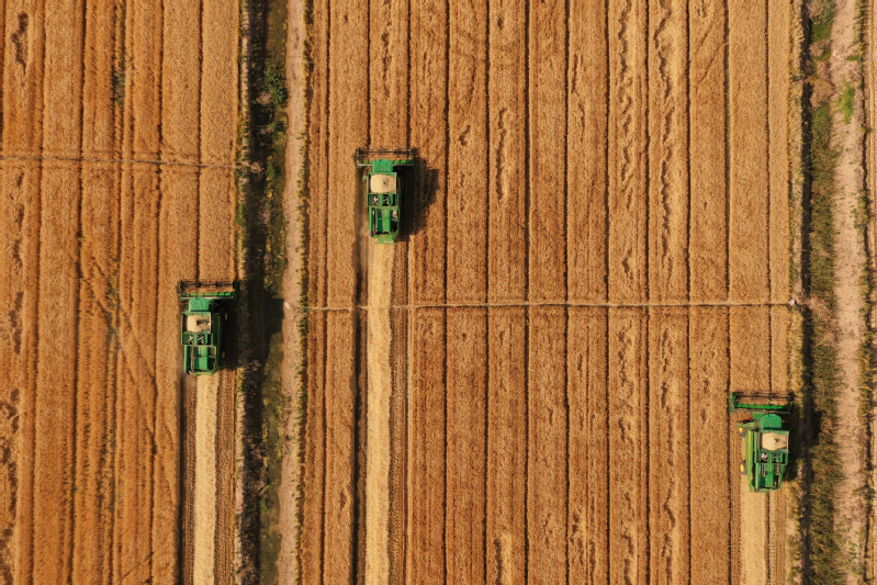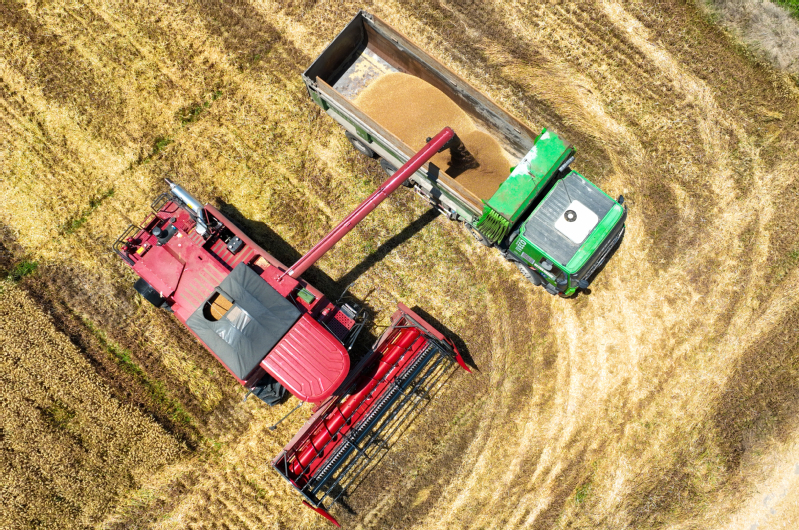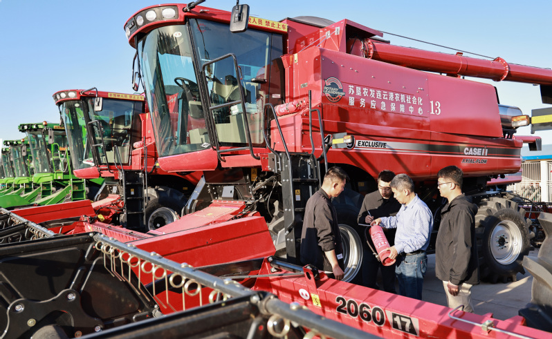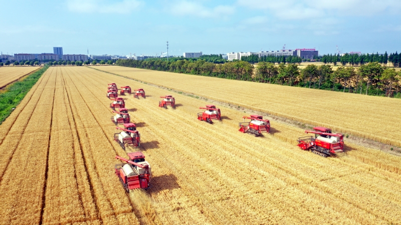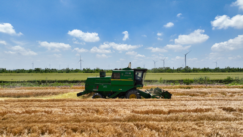 風(fēng)吹麥田千重浪,麥粒漸滿穗金黃。5月22日中午,4臺(tái)約翰迪爾C2400大型聯(lián)合收割機(jī)開進(jìn)了蘇墾農(nóng)發(fā)濱淮分公司27大隊(duì)大麥田間,迎來(lái)了今年夏收“第一鐮”。伴隨著收割機(jī)陣陣轟鳴聲,一排排大麥被卷入收割機(jī)中,稻穗經(jīng)過(guò)脫粒、碎桿等工序后收入機(jī)艙,輸送到運(yùn)糧車上,并拖向場(chǎng)頭翻曬。半天時(shí)間,近300畝大麥?zhǔn)崭罱Y(jié)束。收割現(xiàn)場(chǎng),農(nóng)水中心和大隊(duì)管理人員在田間檢查收割質(zhì)量。“這是我們今年‘三夏’的首次收割,我們前期對(duì)24臺(tái)收割機(jī)進(jìn)行檢修、調(diào)試、保養(yǎng),確保農(nóng)機(jī)以最佳狀態(tài)投入到夏收工作中,務(wù)必要把收割損失率降到最低。”農(nóng)水中心副主任孟琪表示。“今年六生產(chǎn)區(qū)大麥單產(chǎn)有望超去年,按照‘三夏’動(dòng)員會(huì)部署,堅(jiān)持質(zhì)量和標(biāo)準(zhǔn)化,搶抓晴好天氣開展收割作業(yè),計(jì)劃在28日前完成六生產(chǎn)區(qū)的大麥?zhǔn)崭罟ぷ鳎浞掷煤冒汛篼湹牟缈趦?yōu)勢(shì),奠定秋糧豐產(chǎn)基礎(chǔ)。”六生產(chǎn)區(qū)主任盧剛說(shuō)。