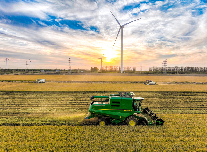 近日,隨著連日陰雨天氣的結(jié)束,蘇墾農(nóng)發(fā)淮海分公司各生產(chǎn)區(qū)迅速轉(zhuǎn)入搶收狀態(tài),一臺臺滿載著希望的收割機轟鳴著駛?cè)氲咎?,將沉甸甸的稻穗盡數(shù)“攬入懷中”。