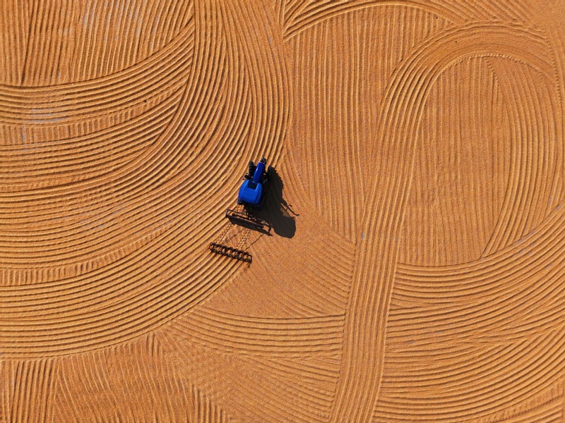 隨著天氣轉(zhuǎn)好,崗埠農(nóng)場加緊推進秋糧收獲、晾曬等工作。圖為10月22日,崗埠農(nóng)場職工駕駛翻糧機械,利用晴好天氣晾曬玉米。在藍天白云的映照下,翻糧機在金色的玉米上劃出一道道優(yōu)美的弧線,刻畫出秋日的美好“豐”景。