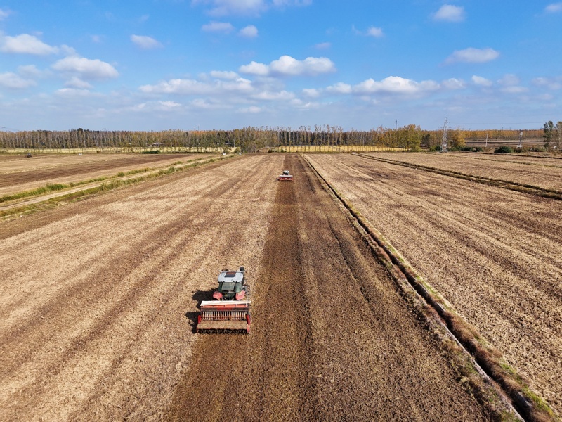 連日來,蘇墾農(nóng)發(fā)新洋分公司搶抓晴好天氣,全力播種冬小麥。廣袤的高標準農(nóng)田上,搭載北斗衛(wèi)星導(dǎo)航系統(tǒng)的大馬力播種機馳騁往復(fù),播下一道道筆直如線的軌跡,高效、精準、均勻地完成播種作業(yè)。