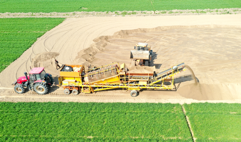 眼下,正是春耕好時(shí)節(jié)。連日來(lái),蘇墾農(nóng)發(fā)新洋分公司各生產(chǎn)區(qū)、大隊(duì)的水稻秧池土地平整現(xiàn)場(chǎng)機(jī)聲隆隆,在北斗衛(wèi)星信號(hào)發(fā)射器的指引下,一臺(tái)臺(tái)大馬力拖拉機(jī)正在進(jìn)行激光平整土地作業(yè),為接下來(lái)的水稻育秧做好準(zhǔn)備。“激光平整省時(shí)省力、管理方便,帶來(lái)的是工作的高效率、水資源的節(jié)約以及更好的土地平整效果。”新中生產(chǎn)區(qū)副主任王凱介紹,激光平整取代了傳統(tǒng)的水田平整,1臺(tái)機(jī)器平均1個(gè)小時(shí)就能平整完1塊秧田,算下來(lái)1個(gè)大隊(duì)所有的秧池一天就能作業(yè)結(jié)束,而且用激光平地技術(shù)平整后的土地平整度極高,高低差在1厘米左右。“平地作業(yè)是個(gè)技術(shù)活,開(kāi)車(chē)之前要有大致的判斷,看看地里哪里洼哪里凸,開(kāi)車(chē)的時(shí)候就要從高的地方往低處開(kāi)。”10大隊(duì)隊(duì)長(zhǎng)季國(guó)春說(shuō)道。原來(lái),裝在平地機(jī)上的北斗衛(wèi)星接收器將采集到的信號(hào)經(jīng)控制器處理后控制液壓執(zhí)行機(jī)構(gòu),當(dāng)平地機(jī)進(jìn)行作業(yè)時(shí),根據(jù)地面的高低變化,液壓機(jī)構(gòu)會(huì)控制刮土鏟上下動(dòng)作,將地勢(shì)高的土刮掉然后運(yùn)送到地勢(shì)低的地方,最終實(shí)現(xiàn)作業(yè)范圍內(nèi)的土地水平高度達(dá)到基本一致的效果。近年來(lái),蘇墾農(nóng)發(fā)新洋分公司一直致力于引進(jìn)推廣節(jié)本增效的農(nóng)業(yè)新技術(shù)新途徑,激光平地整地技術(shù)為農(nóng)業(yè)生產(chǎn)提質(zhì)增效打下堅(jiān)實(shí)基礎(chǔ)。農(nóng)業(yè)中心相關(guān)人員介紹,激