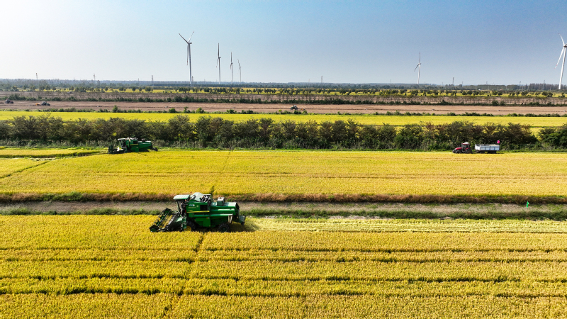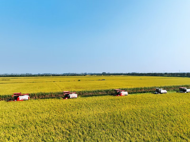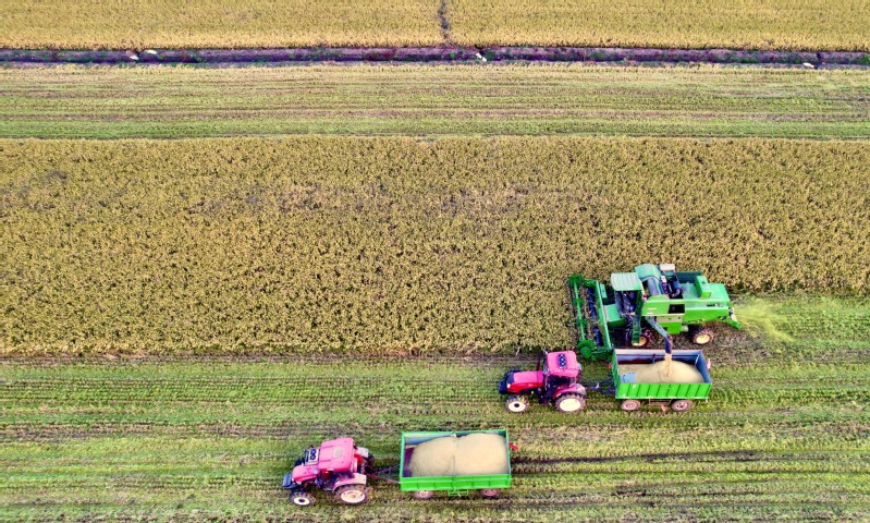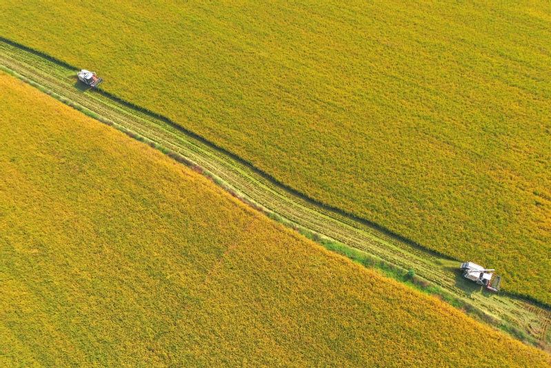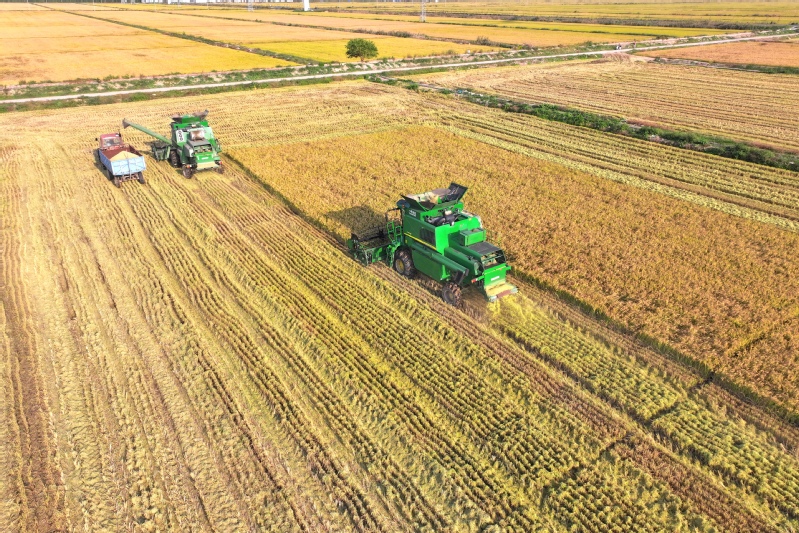 秋風(fēng)拂過,稻菽飄香。眼下,正值水稻收割季節(jié),云臺大地一片金黃。10月22日,蘇墾農(nóng)發(fā)云臺分公司6000余畝水稻開鐮收割,在田間奏響“豐收曲”。機械轟鳴,沉甸甸的稻穗被攬入“懷中”,收割、脫粒、裝車,飽滿的谷粒傾瀉而下,被裝進運糧車?yán)铮ぷ魅藛T美滋滋地看著田間的稻谷被收割殆盡,空氣中彌漫著稻谷的醇香?!敖衲晡覀兊乃鹃L勢好、產(chǎn)量高,和我們以‘繡花功夫’狠抓精細(xì)化管理是分不開的?!痹婆_農(nóng)場公司黨委副書記、蘇墾農(nóng)發(fā)云臺分公司總經(jīng)理宋光鋒在收割現(xiàn)場會滿意地說道。鄉(xiāng)村振興的核心是產(chǎn)業(yè)興旺,現(xiàn)代農(nóng)業(yè)是云臺產(chǎn)業(yè)興旺的中堅力量。近年來,蘇墾農(nóng)發(fā)云臺分公司堅持標(biāo)準(zhǔn)化生產(chǎn)方式,將技術(shù)、人才、信息等資源要素“引”向農(nóng)業(yè)、“流”向企業(yè),充分發(fā)揮國有農(nóng)業(yè)企業(yè)帶頭作用,為農(nóng)業(yè)產(chǎn)業(yè)發(fā)展注入新的活力。據(jù)了解,今年“三秋”,云臺將投入小型收割機20臺用于水稻收割,并投入播種機13臺,預(yù)計本月28日全部收割完畢,稻茬小麥將于31日播種結(jié)束。下一步,云臺將扎實做好秋收秋種秋管工作,牢牢守住“糧袋子”,為推進鄉(xiāng)村振興和糧食安全貢獻(xiàn)云臺力量。